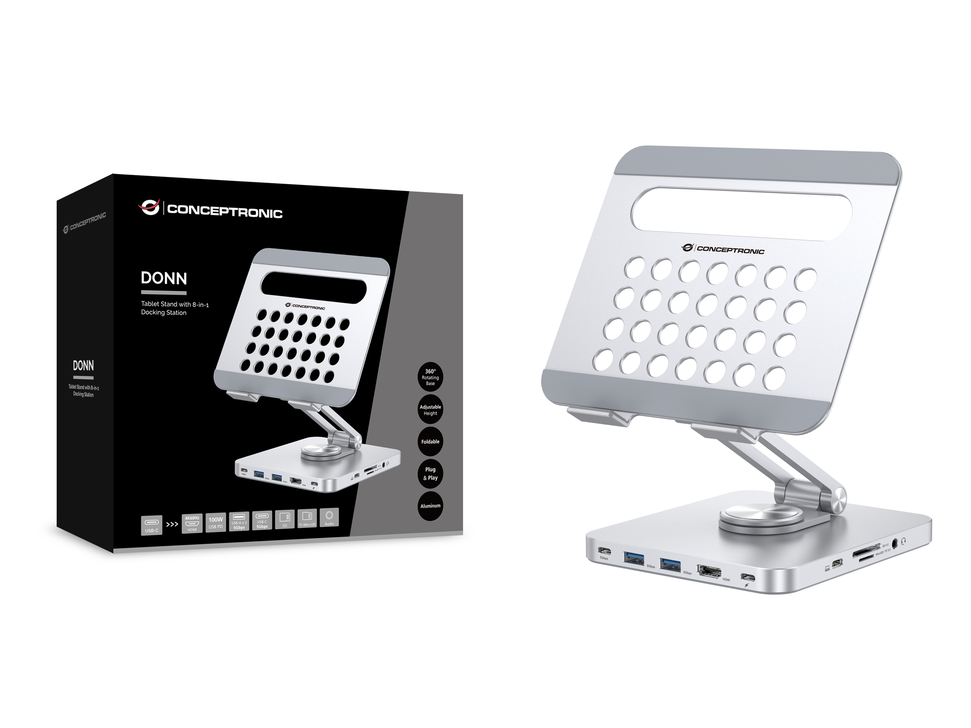CONCEPTRONIC Tablet Halterung inkl.8-in-1 Docking silber