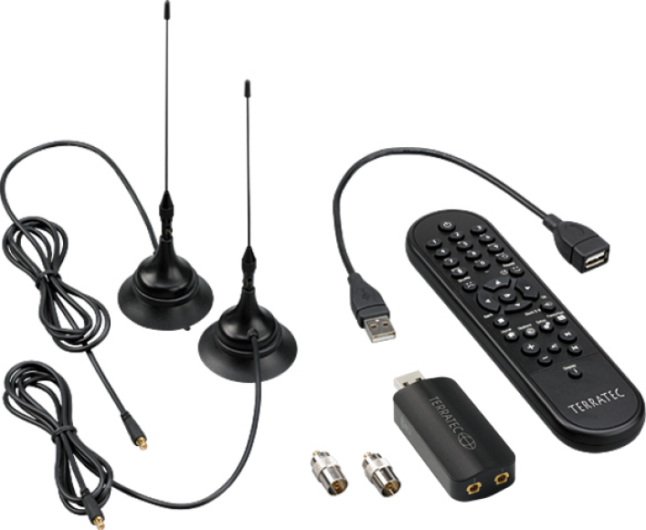 Neben der Software für den TV-Empfang am PC sind auch umfangreiche Zubehöre mit Fernbedienung und zwei DVB-T- Antennen Lieferumfang enthalten.